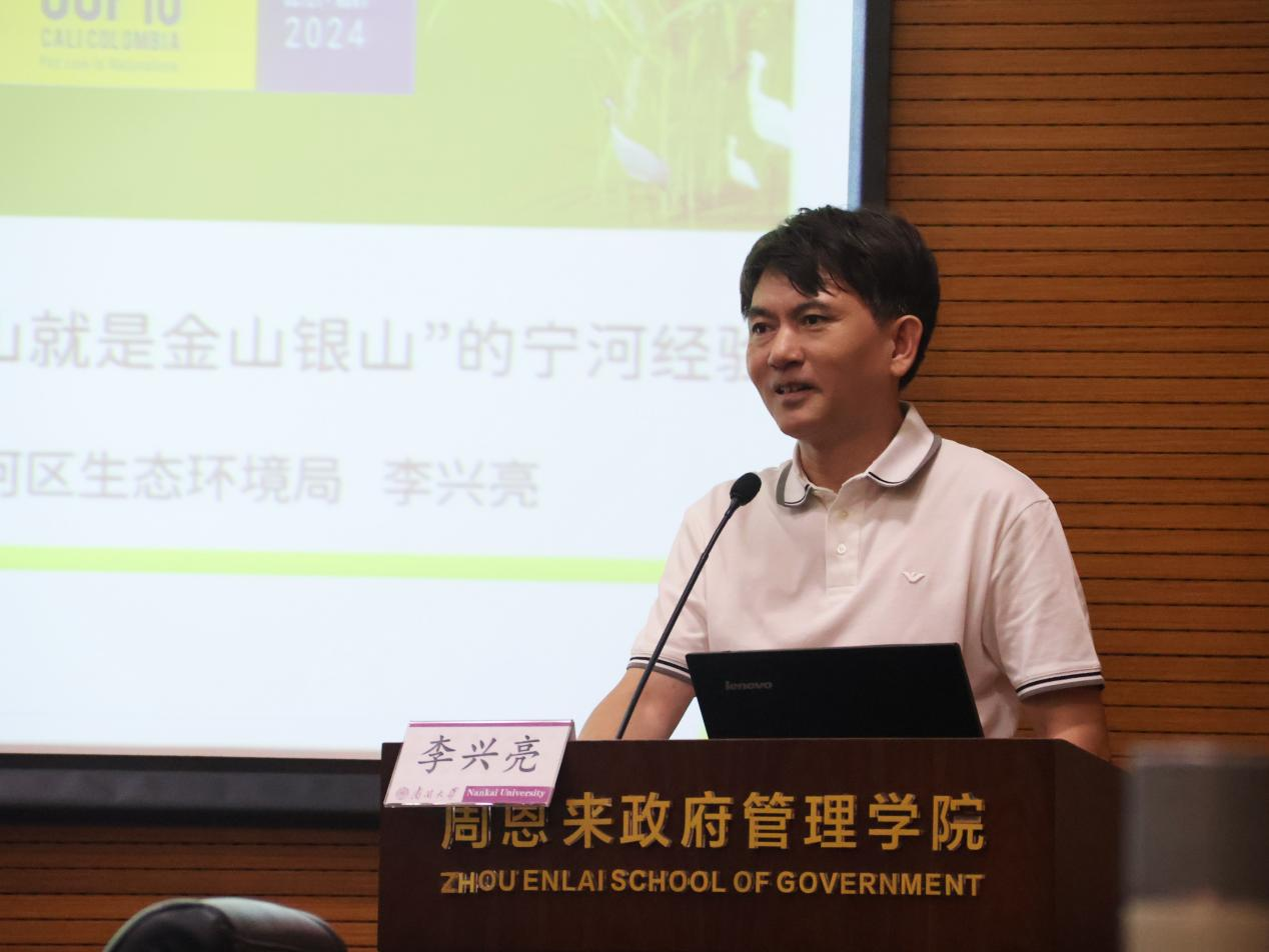 紧接着,李兴亮局长简要介绍了宁河区生态环境局近年来取得的工作成效。近年来,宁河区先后获评“国家生态文明建设示范区”、入选联合国“生物多样性魅力城市”和世界“自然城市”行列。李兴亮局长为我们讲解了获奖背后的过程与经历。