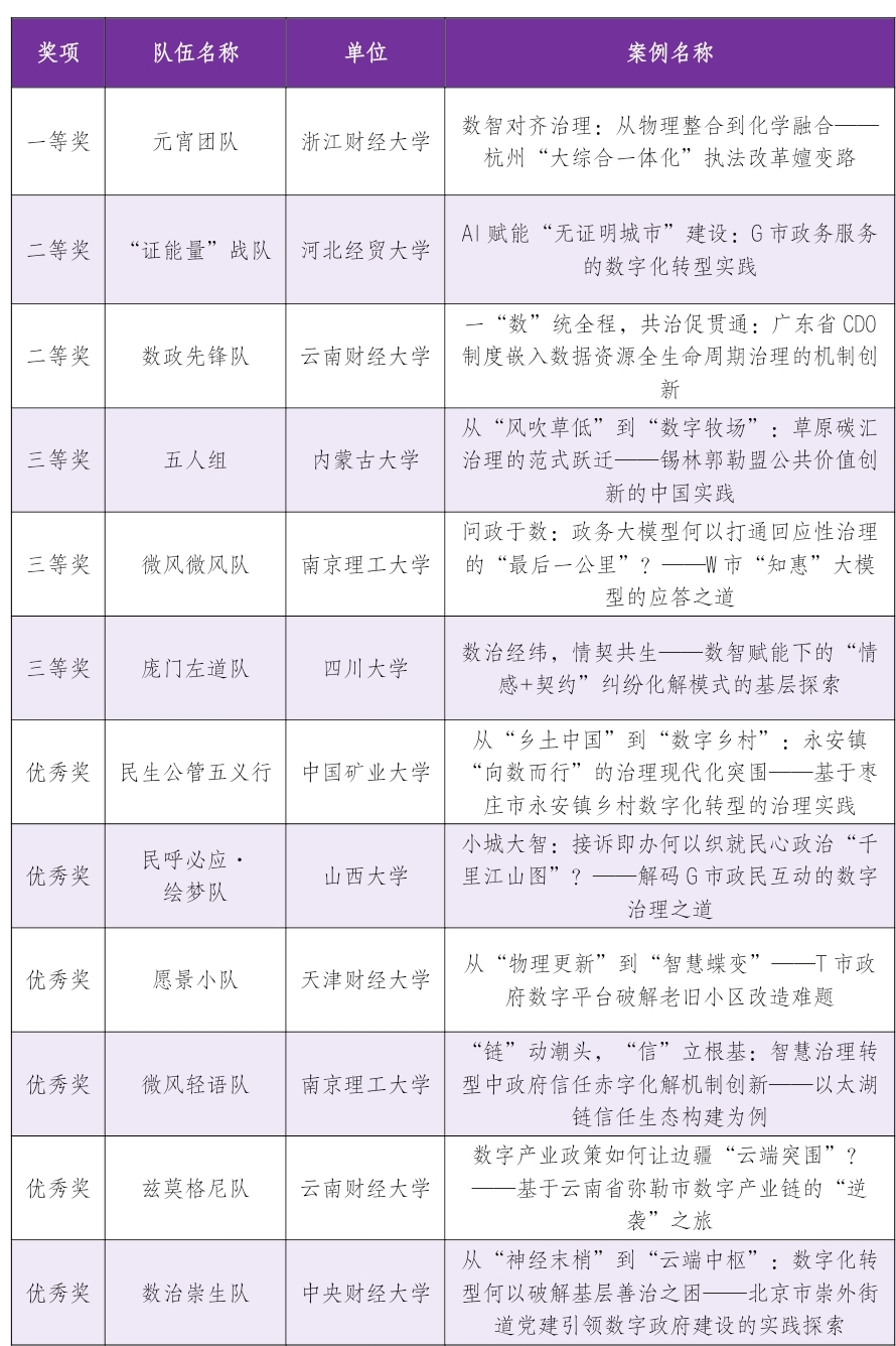 2025年“翔宇杯”中国数字政府建设案例大赛-本科生赛道获奖名单