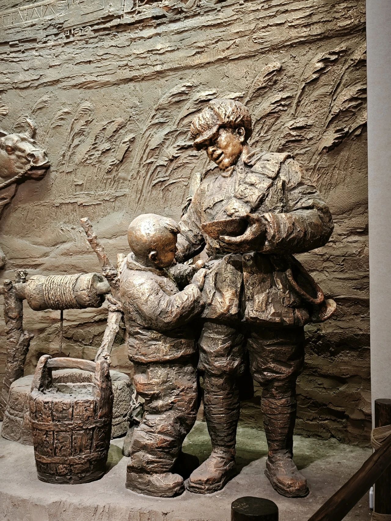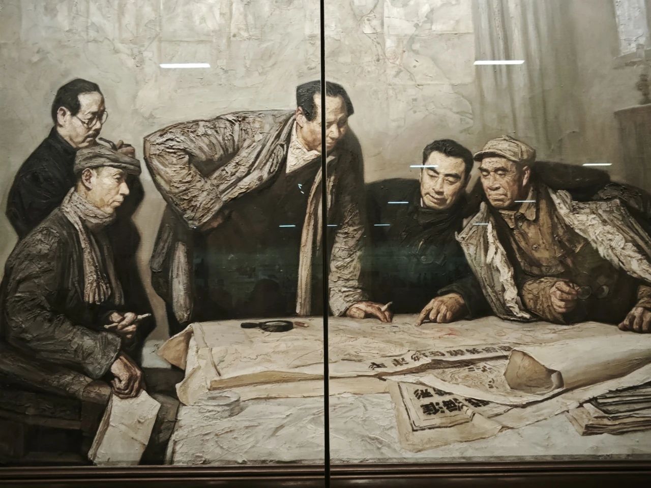 在人民支前展厅,学员们首先看到了一个巨大的模型,生动地刻画了解放战争时期,人民群众支援军队的画面。“一切为了前线,一切为了胜利”,学员们看着文物陈列柜上的标语和栩栩如生的油画,仿佛穿越到了解放战争年代,真切地感受到了军民一条心,体会到了人民群众的伟大力量与解放战争的民心所向。