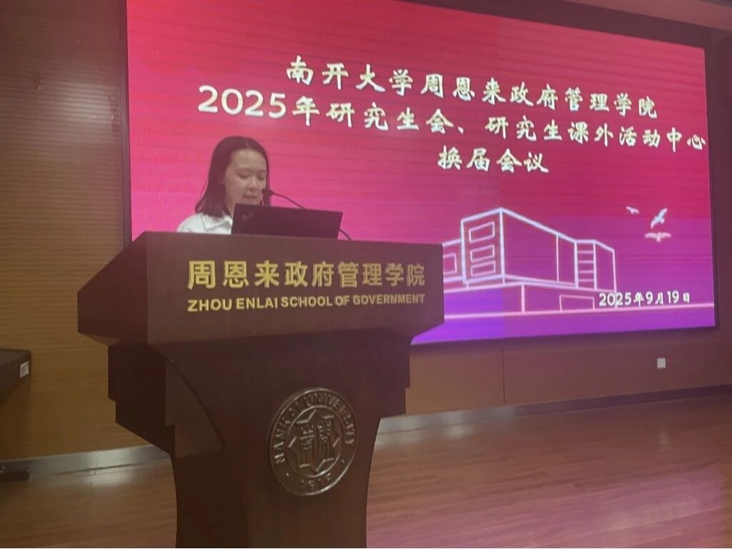 学院党委副书记兼副院长崔宇对研究生会和研究生课外活动中心过去一年的工作给予了高度评价。她指出,两个组织是学院与研究生同学之间重要的桥梁与纽带,作用关键,责任重大。会上,崔书记提出了三点期望:一是坚守初心,扛起责任使命;二是锻炼业务水平、端正工作作风;三是围绕中心、服务大局。崔书记鼓励新一届学生干部要以实际行动践行“允公允能”的南开精神,继续发扬优良传统,不断创新工作方式方法,更好地服务于全体研究生同学。