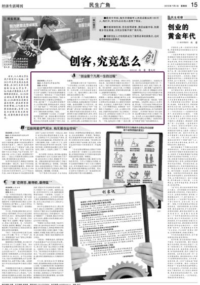 “我们要和创业谈一场恋爱。”汤明磊笑着说。在他看来,创业让人生更丰富、更完美,“大学生创业尽管有成功率不高的问题,但是我们的创业是颠覆性的创业,是创新型的创业,而不是资源型的创业”。许多类似“闯先生”的众创空间、创业孵化器也为年轻人们提供了机会。在天津,北大创业训练营天津基地、玑瑛青年创新公社等都让一批曾经的创业“失败者”找到了再次扬帆的动力。