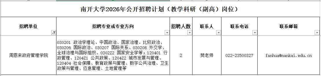 学院衷心欢迎在国内外著名大学获得博士学位和具有高水平研究成果的年轻朋友加盟学院。我们愿与社会各界,特别是广大校友,在教学、科研、咨询服务、学生工作、培训、外事等方面密切合作,共同努力,争取使学院的几个主要学科都得到迅速的发展和提高,振兴南开,振兴中国社会科学事业!