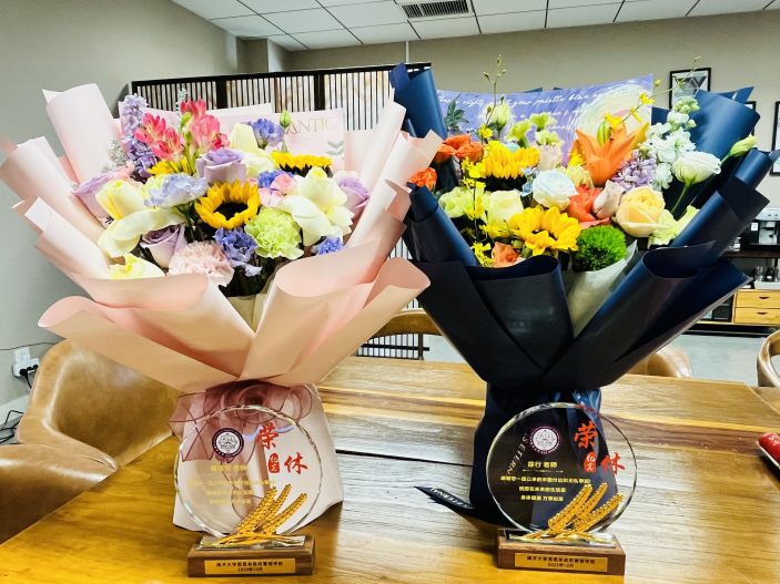 在温馨的致敬仪式上,王慧书记与吴晓林院长共同为两位老师颁发荣休纪念牌,新入职教师代表杨帆、吴亚博向荣休教师献花,表达敬意与祝福,全体与会人员合影留念,定格这珍贵瞬间。